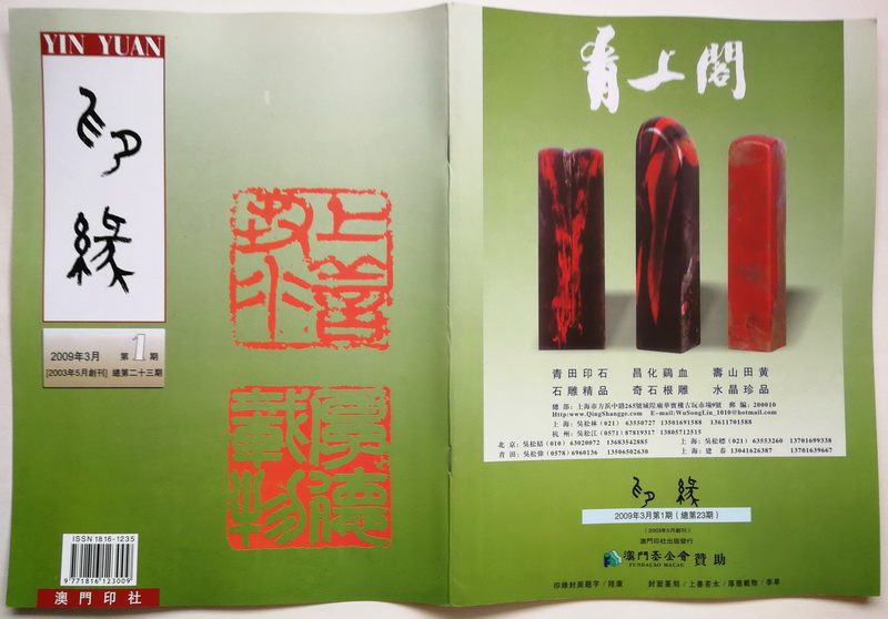 《印缘》2009年第1期,总第23期,2009年3月出版。澳门印社出版,陆康任社长,廖富翔主编。 本期主题介绍李早,刊登刘江、韩天衡、周正举、施宝霖等文章。