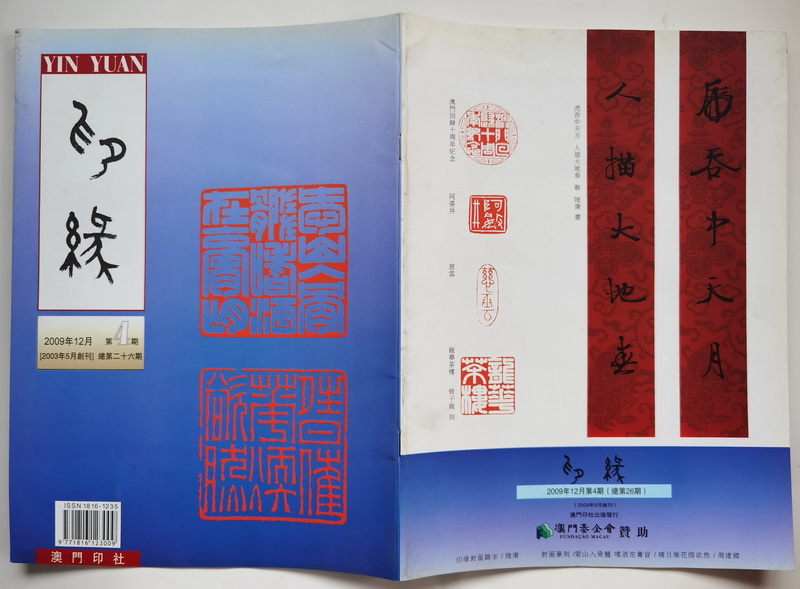 《印缘》2009年第4期,总第26期,2009年12月出版。澳门印社出版,陆康任社长,廖富翔主编。本期主题介绍周建国,刊登范景中、廖富翔、刘德扬等文章 ,介绍南通印社。