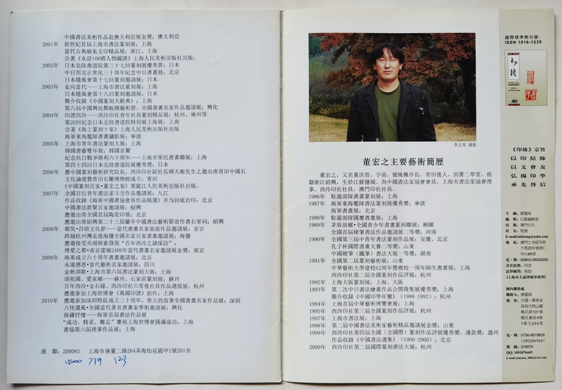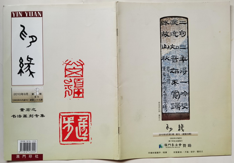 《印缘》2010年第3期 增刊,总第29期,2010年9月出版,含封面共16页。澳门印社出版,陆康任社长,廖富翔主编。本增刊为“董宏之书法篆刻专题”,内容包括董宏之艺术简历、蒋瑾琦评论、名家集评以及董宏之书法篆刻作品。