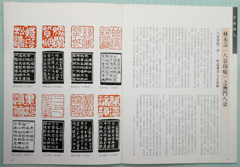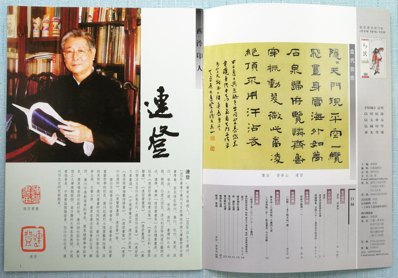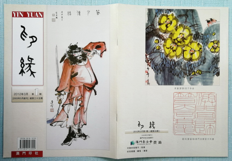 《印缘》2012年第1期,总第35期,2012年3月出版。澳门印社出版,陆康任社长,廖富翔主编。本期主题介绍连登,含其书画篆刻及陈永正评论。刊登陆康序跋6条,杨忠明《玩物——老上海文玩》选,另推介林永寿《八景印痕》之澳门八景,载《荷香十里——庆回归暨廖富祥、陆璐、董宏之、廖亚辉、廖静书画篆刻艺术展》。