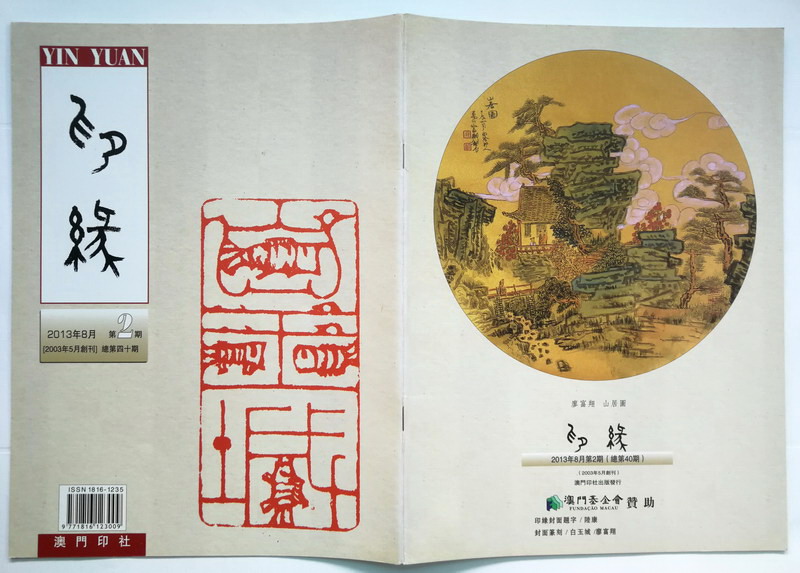 《印缘》2013年第2期,总第40期,2013年8月出版。澳门印社出版,陆康任社长,廖富翔主编。本期为廖富翔专辑,含篆刻、书法、绘画、作品集评等。