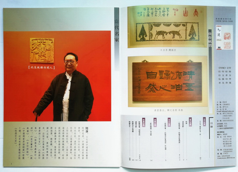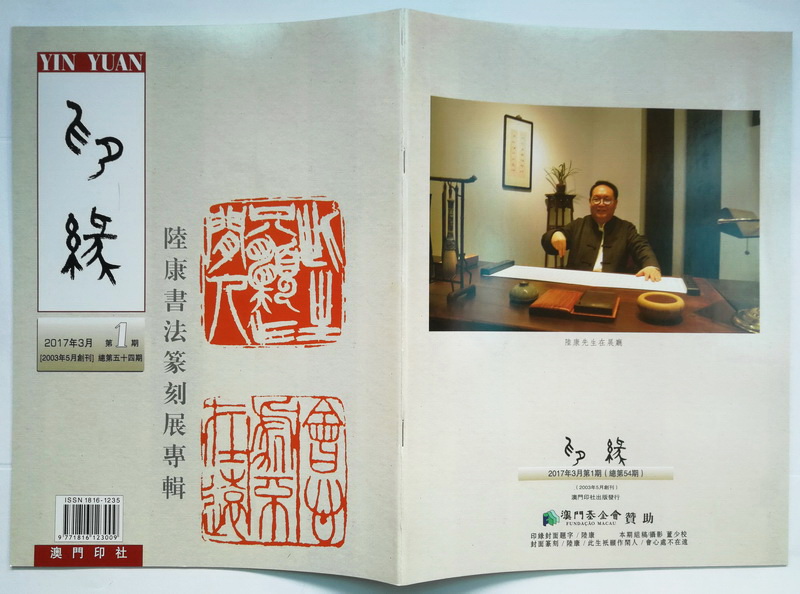 《印缘》2017年第1期,总第54期,2017年3月出版。澳门印社出版,陆康任社长,廖富翔主编。本期为陆康书法篆刻展专辑,含展览介绍、陆康作品、媒体报道、现场影像等。本期内容由董少校组稿。