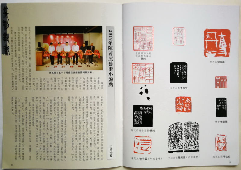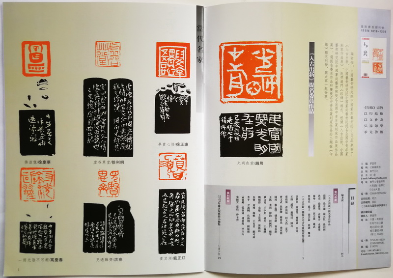《印缘》2020年第2期,总第67期,2020年6月出版。澳门印社出版,陆康任社长,廖富翔主编。本期主题介绍“入古出新”中国艺术研究院中国篆刻艺术院提名全国中青年篆刻家作品展,含 徐正濂、徐庆华、徐云叔、陆康、魏杰、李滔、顾琴、朱振安等作品。“篆刻观察”栏目登载董少校撰《2019年陈茗屋艺术小盘点》。