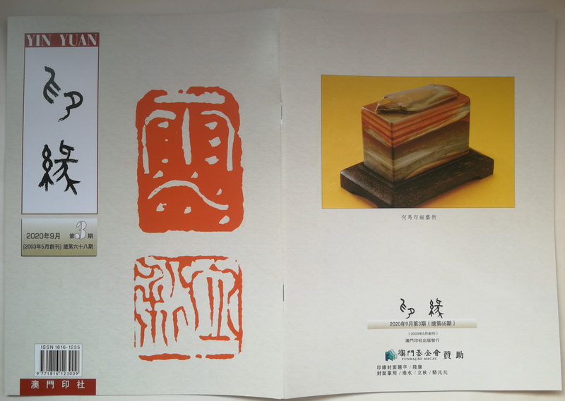《印缘》2020年第3期,总第68期,2020年9月出版。澳门印社出版,陆康任社长,廖富翔主编。本期主题介绍骆芃芃艺术,含骆芃芃书法、篆刻、文章。“篆刻观察”栏目登载董少校撰《来出生篆刻研究的奠基之作——读来楚生篆刻述真》和《2019年 上海篆刻一瞥》。